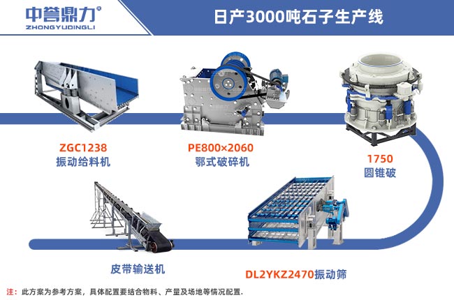 這套配置方案適用于解決硬度比較大的物料,同時圓錐破也可以換成硬巖破或者旋回破,設備配置靈活,適合自己的才是好的,以上方案僅供參考。