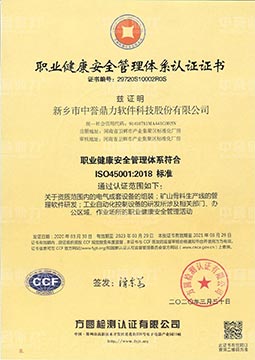 職業健康安管理體系認證證書