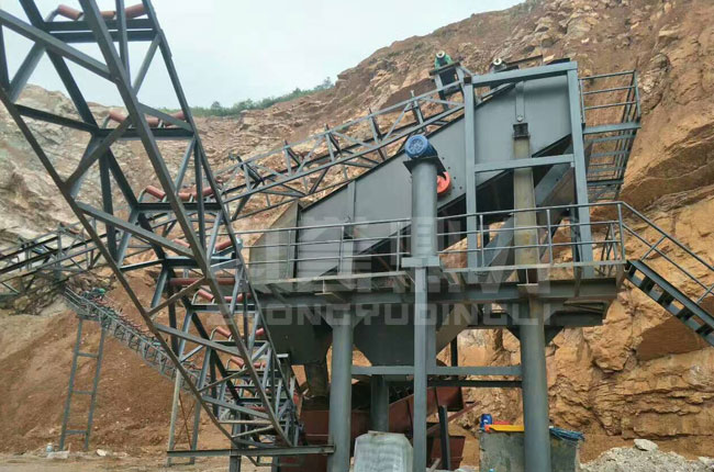該項目要處理的原石料較小,主要生產機制砂供混凝土攪拌站使用。中譽鼎力為其配置的是ZSJ1416雙轉子制砂機即配套篩分設備。