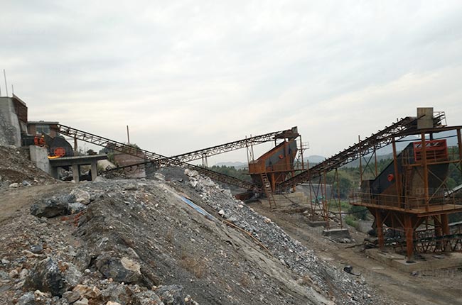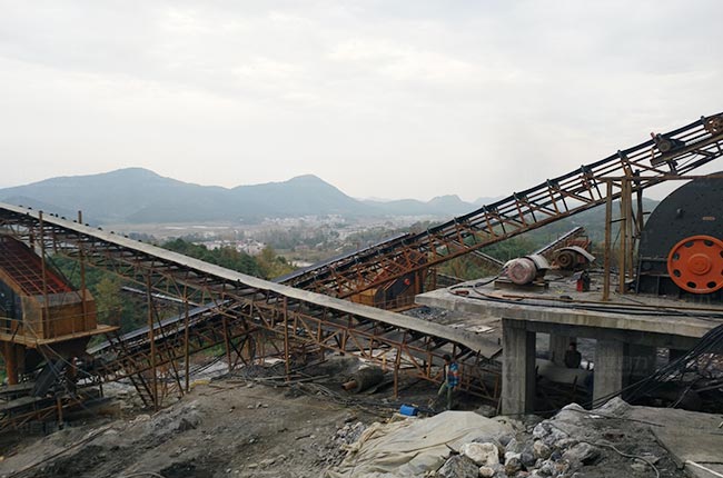 江西新余某石料廠建設的碎石生產線屬于300噸小型生產線,采用一臺一次成型的PCZ重型錘式破碎機,設計有3臺振動篩,分三道篩分工藝,成品骨料規格多。