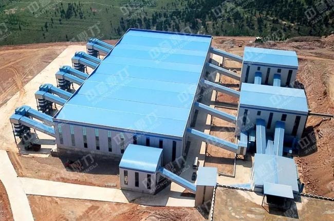 整個加工流程是:石灰石由除土篩預先除土篩分,得到清潔度較高的石灰石再由1820破碎機進行破碎,4臺并排安裝的3070振動篩進行篩選,再由1220整形錘破進行二次整形破碎,4臺并排安裝的3070振動篩進行篩選。