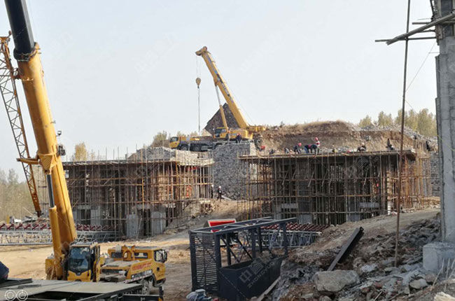 石灰石原石料由2050給料機均勻投入重型錘破碎機進行粗碎作業,破碎后的石灰石料由40100圓振動篩進行篩選,篩分出不同規格石料,不滿足成品料粒度的石灰石送至1220錘式破碎機進行再次破碎,再由40100振動篩進行篩選處理。