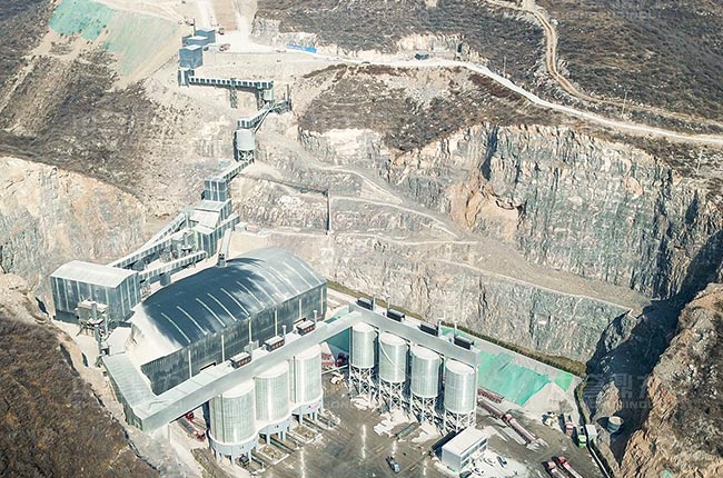 工藝介紹:石灰?guī)r原料經(jīng)給料機(jī)被PCZ1615重錘式破碎機(jī)粗碎,后通過振動(dòng)篩篩選,粒型較大的會(huì)由整形破二次加工,符合制砂需求的會(huì)送至制砂機(jī)制砂,其后會(huì)再次經(jīng)過振動(dòng)篩篩分,然后根據(jù)料類劃分由皮帶機(jī)輸送至儲(chǔ)料筒倉,整個(gè)破碎制砂工藝中安裝有多臺(tái)除塵設(shè)備。
