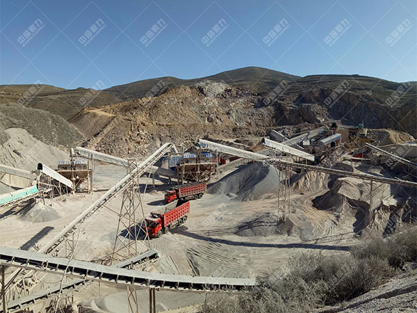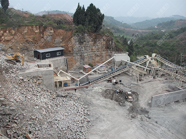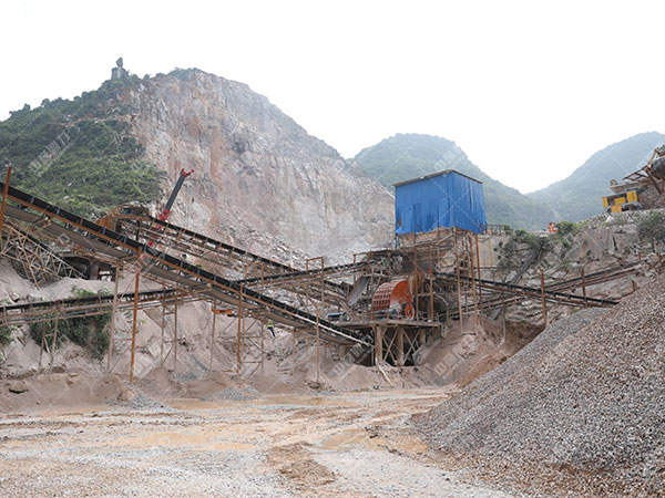破碎生產(chǎn)線中大塊巖石經(jīng)料堆由振動(dòng)送料機(jī)均勻地送進(jìn)鄂式碎石機(jī)進(jìn)行粗碎,粗碎后的巖石由皮帶運(yùn)輸機(jī)送入反擊礦山碎石機(jī)進(jìn)行深度破碎;整型破碎后的巖石由皮帶運(yùn)輸機(jī)送進(jìn)振動(dòng)篩進(jìn)行篩選分級(jí),篩選分級(jí)出多種不同性能的石子,粒度合格的石子由成品皮帶運(yùn)輸機(jī)送往砂石堆;不粒度合格的石子由皮帶運(yùn)輸機(jī)返料送入反擊礦山碎石機(jī)進(jìn)行又一次破碎,形成閉路多次循環(huán),成品粒度可根據(jù)用戶的需要進(jìn)行組合和分級(jí),為保護(hù)環(huán)境,可搭配輔助的除塵機(jī)械。
