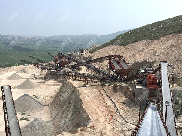 【小型碎石生產線工藝該如何設計?】在材料點距石子廠較近的狀況下,小型碎石生產線應鄰近料場設置,以簡化大塊石頭運送環節,運輸距離,技術設計應力求集中緊湊、運送簡捷、盡量利用地形高差,粗碎設備(含受料堆)進出料高差較大,為節約土石方開挖項目量,粗碎設備車間的位置滿意于選在斜坡上,依據通常經驗,較為優良的廠址山勢條件應為上陡下緩的坡地,緩地段用在設計成品堆料場與出料公路,粗碎設備下料高程直與料場來料的運送途徑相適應,已免重車上坡,因為中整型破碎機械造型尺寸通常較小,加之機械臺數少,為物料傳送距離,預篩選分級與中整型破碎靖分產品應由溜槽漏斗送至中制沙機粉碎,篩選分級與成品堆料環節好設計在有需高差的臺階地上,成品砂石料一次堆存入倉。